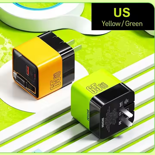 3 in 1 GaN Charger,Scalable 65W MAX fast charger module with Type-C cable and 2 USB ports